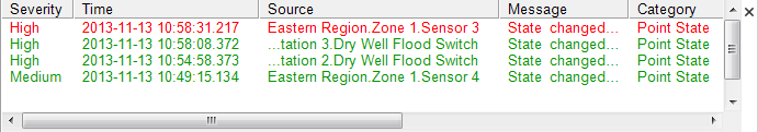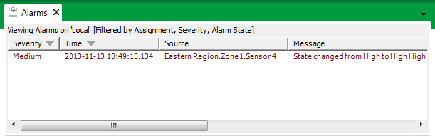 - An entry is usually added to the Alarm Banner and Alarms Lists. The entry indicates, alongside other things, the Alarm Severity, Status, and Category.