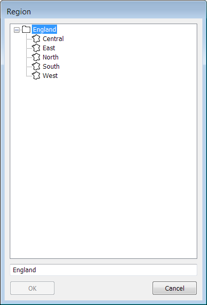 A Reference browse window is displayed. - In the window, select the new Region by which you want to filter.