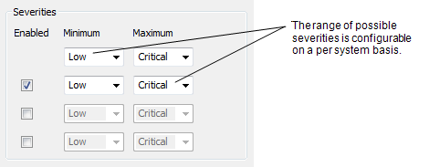 The Severities that apply to your database are configured using the Geo SCADA Expert Server Configuration Tool: see Alarm and Event Severities in the Geo SCADA Expert Guide to Server Administration.