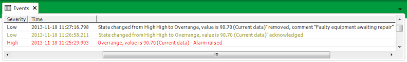 The comment can be viewed by any user who has access to the Events List (see Events in the Geo SCADA Expert Guide to ViewX and Virtual ViewX Clients). The comment forms part of the record that is added to the Events List when the alarm is removed.