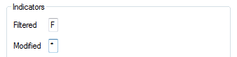 You can use the Options window's Alarms and Events tab to chose the characters used for the Filtered and Modified indicators.