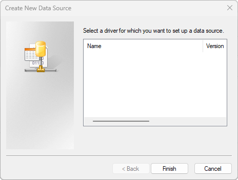 Your computer has two ODBC Data Source Administrator Tools - one for 32-bit applications and one for 64-bit applications. If you are using a 32-bit application on your computer, you need to use the 32-bit ODBC Data Source Administrator Tool to set up ODBC access.
