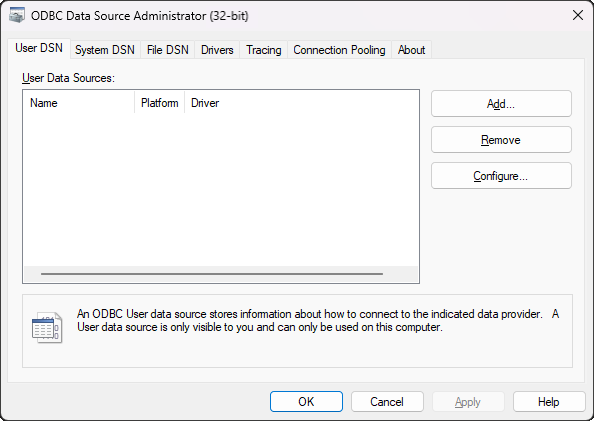 To access the 32-bit ODBC Data Source Administrator Tool: