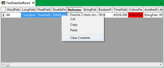 You can clear the content from one or more cells in a Data Set Row so that the cells remain in the Grid but are devoid of content. To clear the content of more than one cell, either drag over a block of cells, fields or see Keyboard Shortcuts for other ways of making multiple selections.