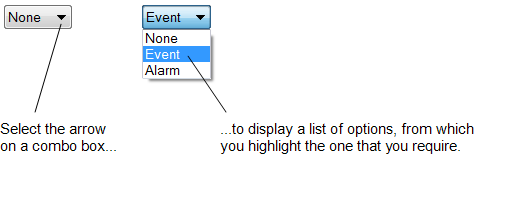 To enter data using a combo box, you click on the arrow to display a pop-up list of options, and select the option that you require. The highlighted value is then displayed in the field.