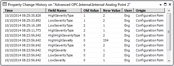 On systems on which the feature is enabled, you can use the Display Property Changes pick action to Display a List of Property Changes. You can also configure Geo SCADA Expert to raise an alarm if the recording of configuration changes data is deemed to be excessive ('overactive') (see Define the Acceptable Number of Configuration Changes Records).