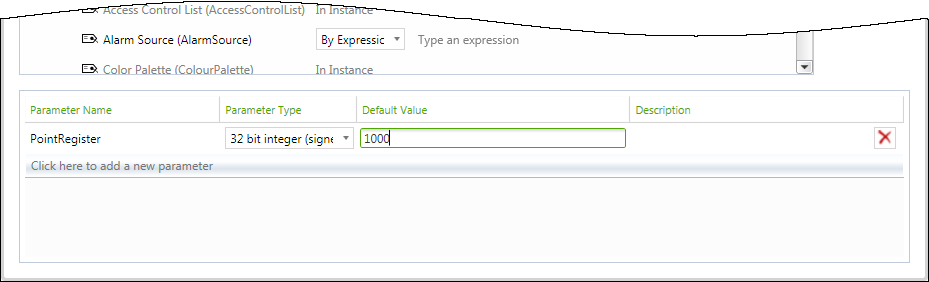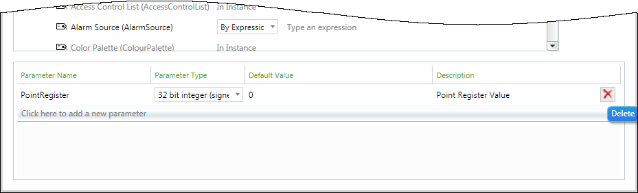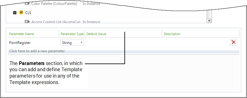 To remove an existing Template parameter, select the Delete button.