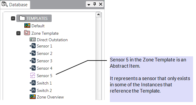 To accommodate the fifth sensor, an Abstract Item is added to the Group Template: