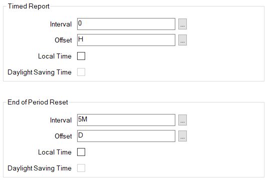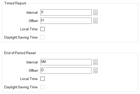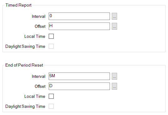 - If the source values are obtained from a device with which Geo SCADA Expert communicates using a protocol that does not have an End of Period feature. For example, Counter-type points on drivers that do not support End of Period reporting. On such a driver, the outstation might still implement an End of Period feature, or you might use other means to implement that feature (for example, via a user program in the outstation). With such a setup, the End of Period value (comprising the total value of the Counter at the end of the period) will not have an 'End of Period Reset' reason. Geo SCADA Expert will therefore not recognize that value as an End of Period value. Additionally, the outstation, rather than Geo SCADA Expert, must generate the zero value reset at the end of each period.