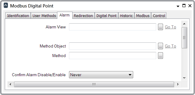 - To define an Alarm View for an individual database item, select the Alarm tab.