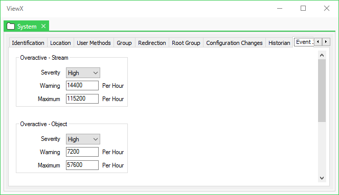 Use the Event Journal tab on the Root Group Form to manage number of acceptable Event Journal records. There are two sections provided to manage these records.