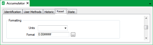 Use the fields within the Formatting section of the Reset tab to define the appearance of an Accumulator’s values on other displays, such as Lists and Trends: