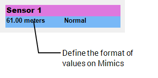 For instance, if you display the value of an analog point on a Mimic, you define the value’s format using the Format field on the Analog Point Form (see Define the Appearance of an Analog Point’s Values).