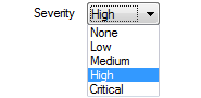 Where the severity type (alarm or event) is fixed within Geo SCADA Expert, a single Severity field is displayed on a Form. Use the Severity combo box to select the severity level that is appropriate to the events and/or alarms associated with that particular item.