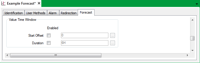 Use the fields within the Value Time Window section of the Forecast tab to specify the period for which Geo SCADA Expert is to import Forecast values:
