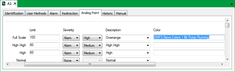 A user assigns a ‘custom’ color to an analog point’s Full Scale Limit: