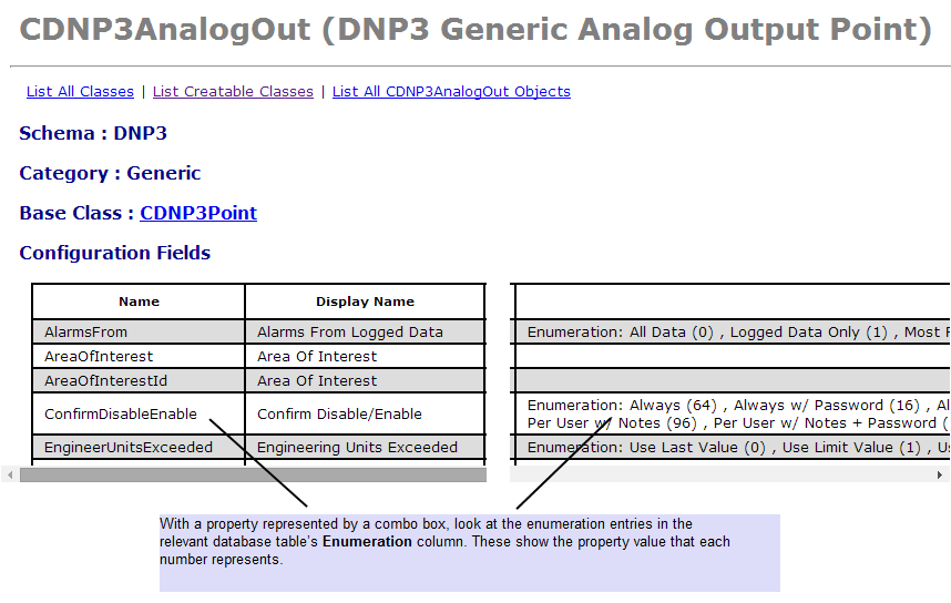 The property is displayed as a combo box on the point’s configuration Form. With such properties, Geo SCADA Expert stores each property value as a number in the database.