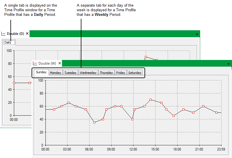 To edit a Time Profile, so that you can configure the actual profile graph, you have to display the Time Profile in Design Mode. To do this, either: