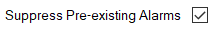 If further alarms get generated for any of the sensors while the suppression remains in force, those alarms will be suppressed and omitted from alarm displays. This is regardless of the setting of the Suppress Pre-Existing Alarms check box on the configuration Forms of those sensors.