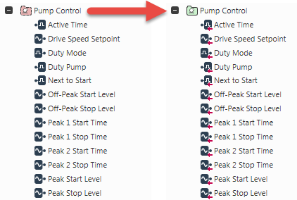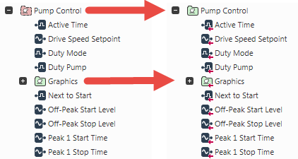 For example, a point in a Group Instance will usually take its configuration details from a corresponding point in the Group Template. Most of the property values for that point will typically come from the Group Template—only those properties that are optional or unique to that particular point, will usually be assigned locally in the Group Instance.