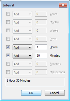 The resultant time period is shown in the display area at the bottom of the window. The period is updated as you use the above fields to produce the required interval.