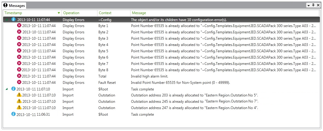 The Messages window contains messages that Geo SCADA Expert has added to the window during the current work session. (The exception to this is any messages that you have cleared from the Messages window.)