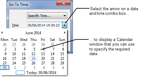 While operating or configuring Geo SCADA Expert, you may be required to specify a date and time in a field. Where applicable, Geo SCADA Expert's date and time fields support a Calendar window that you can use to specify the date element of such fields. This section explains how to specify the date and time elements of such fields.