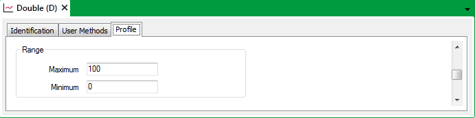 Use the Minimum and Maximum fields within the Range section of the Profile tab to specify the range of values that the Profile can display.