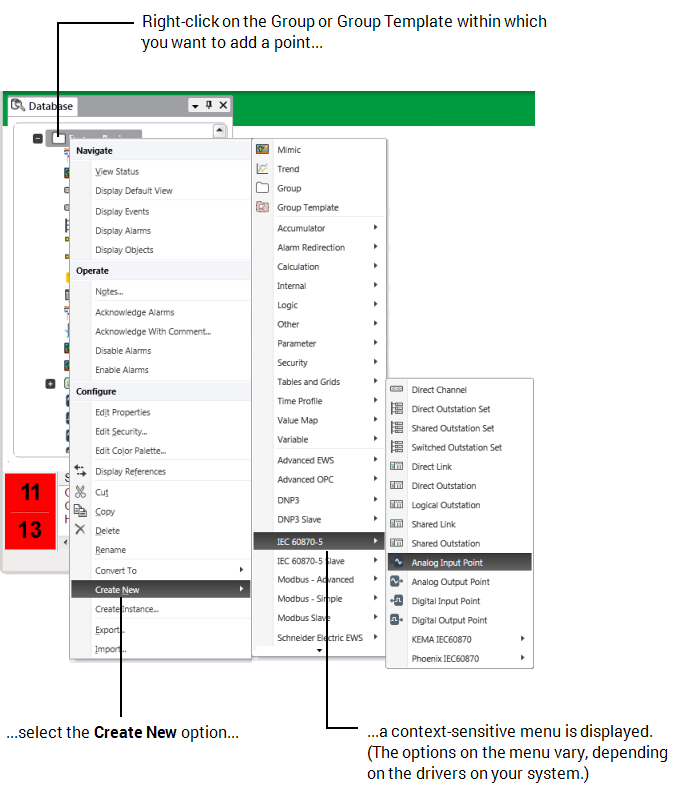 2. In the Database Bar, right-click on the Group, or Group Template within which you want to add a point.