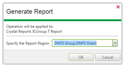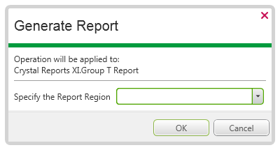 When a user selects the Generate Report pick action from ViewX, a window is displayed prompting the user to specify the Group for which they want to generate the report: