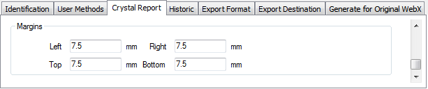 In addition to using the Printing section of the Crystal Report tab to Define the Print Properties, you need to use the fields within the Margins section of the tab to define the page margins for reports that are printed using the Print Report pick action.