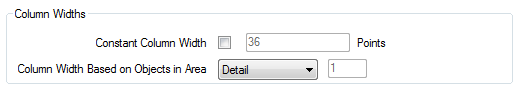 Clear the check box if the column widths are to assume a particular width, based on a particular column-type. Use the remaining fields in the Column Widths section of the tab to specify that width.