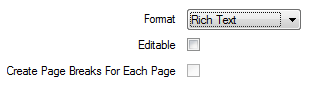 Clear the Editable check box to export a report in an exact format that retains some formatting. Any drawing objects are placed in text frames. This option is typically used to produce forms to which text is to be added.