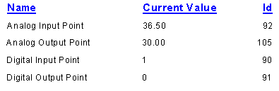 A simple report displays the SCADAPack Modbus points on a Geo SCADA Expert system.