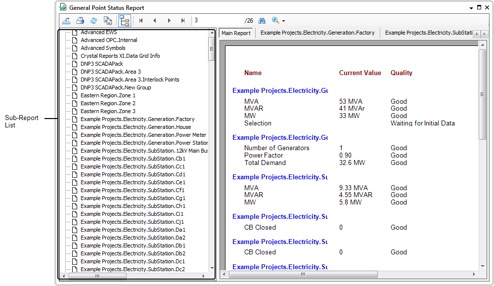2. The available Sub-Reports are listed in the sub-reports panel.