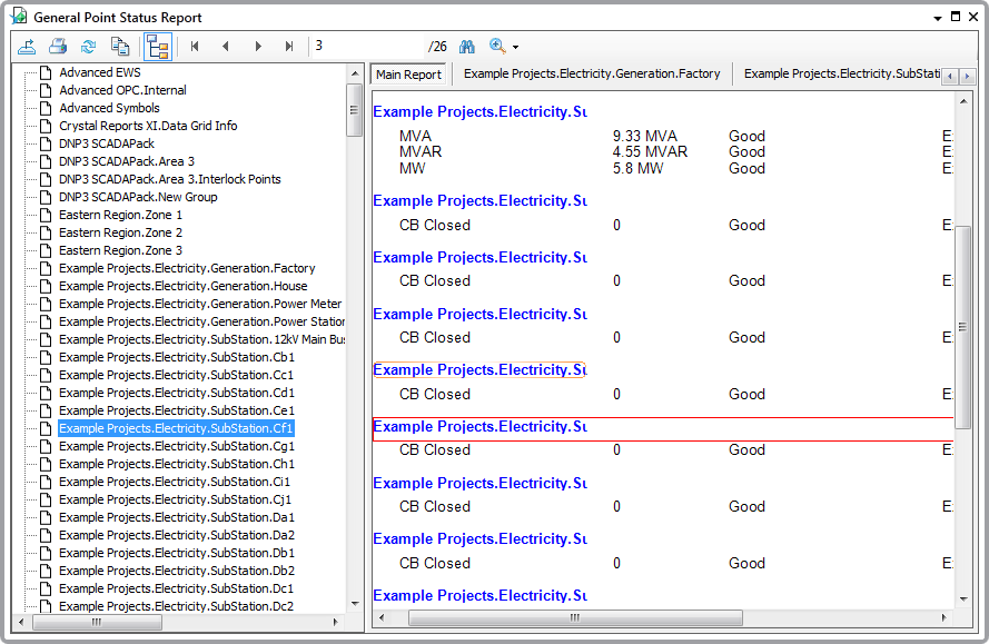 3. To display a sub-report, select the sub-report you require, the heading is displayed in the viewer with a red highlight.