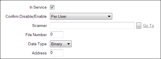 - Data Type—Use to specify the format of the data that is to be read or written to. The options are Binary, Integer and Float. (The Float option only applies to Analog points.)