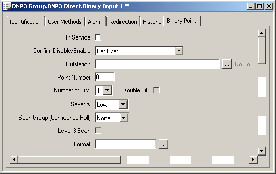 - Double Bit—Applies to DNP3 Binary Input points only. If the point comprises two bits (Number of Bits = 2), use the Double Bit check box to specify the whether the point comprises two single-bit points or one double-bit point at the outstation.