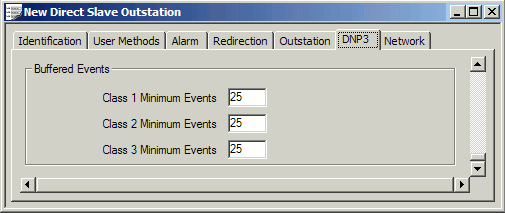 Use the fields within the Buffered Events section of the DNP3 tab to define the minimum number of buffered events that are required in order for Geo SCADA Expert to send an unsolicited message to the DNP3 master. When Geo SCADA Expert generates an unsolicited response, it sends the buffered events (of all enabled event classes) for the DNP3 Slave outstation to the DNP3 master.
