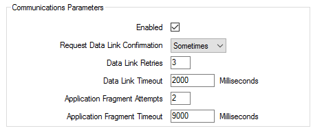 • The outstation is on a significantly faster or slower link—in this situation, you would adjust the Data Link Timeout and Application Fragment Timeout accordingly.