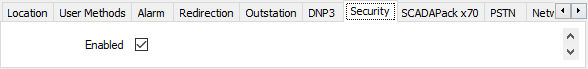 Use the Enabled check box at the top of a DNP3 Outstation’s Security tab to specify whether any outstation transmissions are to use DNP3 Secure Authentication: