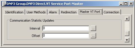 Use the fields within the Communication Statistic Updates section of the tab to define how often the communication statistics are updated for the VT Port. You can view the statistics on the port’s Status display.