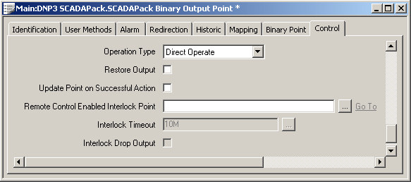 Configure Binary Output Point DNP3 and SCADAPack Control Properties