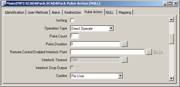 Use the fields at the top of the Pulse Action tab to define the general properties of DNP3 SCADAPack Pulse Action (NULL) or DNP3 SCADAPack Pulse Action (Trip-Close) points.