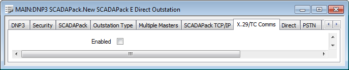 Select the Enabled check box on the X.29/TC Comms tab if the SCADAPack E outstation is to route data between an X.29 Packet Assembler/Disassembler (PAD) and remote packet-mode device(s) and/or other PAD(s).
