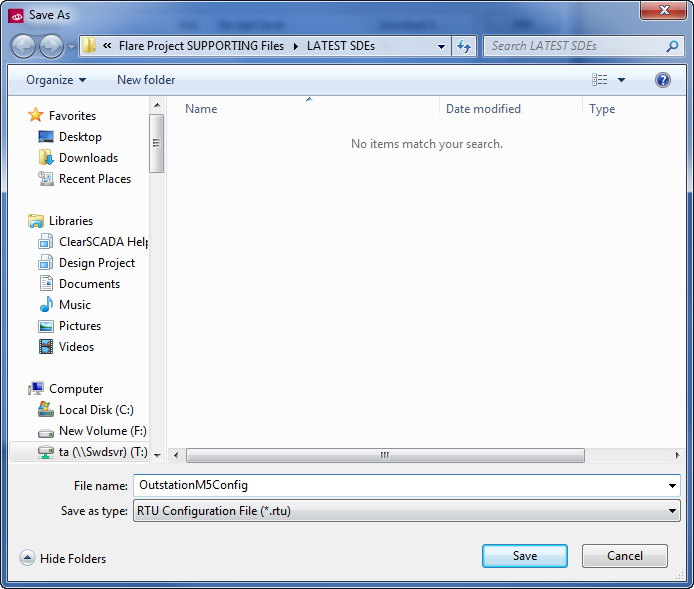 To export a file, select the file’s entry in the Configuration Setup window and then select Export. When you select the Export button, a Save As window (shown below) is displayed.