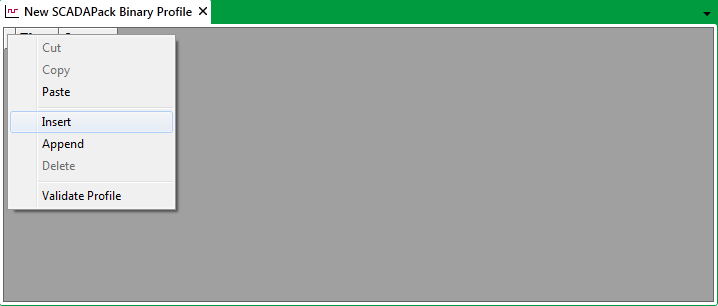 1. Right-click on the top left of the DNP3 SCADAPack Profile editor.