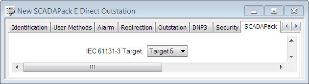 Use the IEC 61131-3 Target combo box, on the SCADAPack tab, to specify the Target number of the outstation's IEC 61131-3 software.