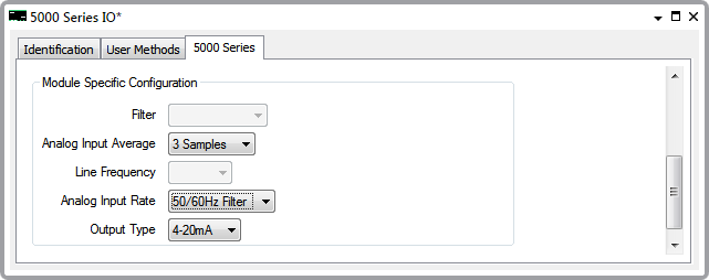 When applicable, use the fields within the Module Specific Configuration section of the 5000 Series tab to specify further module-specific properties. The field(s) only apply when certain Module Type options are specified (the fields are ‘grayed out’ when not applicable).