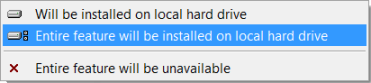 As with any Geo SCADA Expert component that you want to install, you click on the icon that represents that component, to display a set of options. You then choose to either install just that component, or the entire feature (the component and any ‘child’ components).